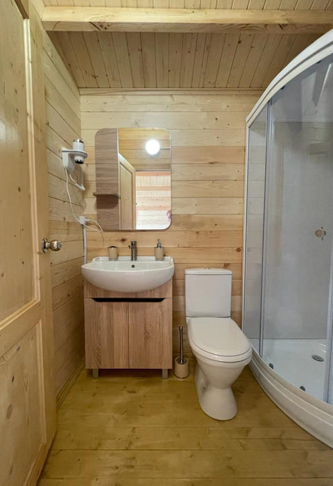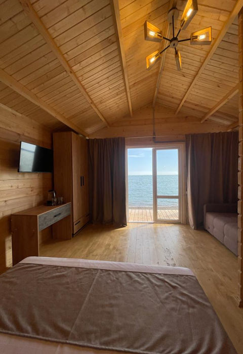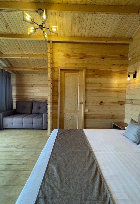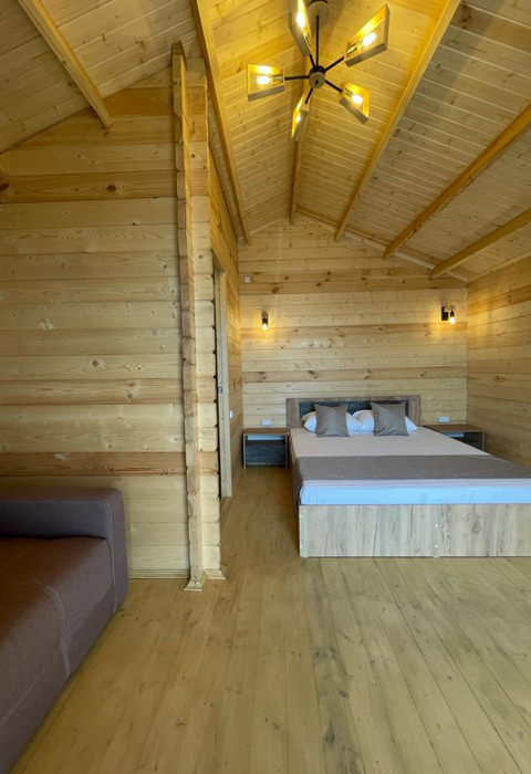 Площадь номера - 25 кв.м. 1 комната. 3 осн. места. спальные места: 2-спальная кровать + диван-кровать. В номере: телевизор; кондиционер; душ; туалет; фен; терраса; мини-холодильник; чайник.